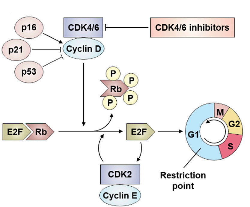 库莫西利(Culmerciclib)为CDK2/4/6抑制剂,CDK4/6(细胞周期蛋白依赖性激酶4和6)通过磷酸化Rb(成视网膜母细胞瘤蛋白)推动细胞周期G1期向前进展。HR+乳腺癌赖雌激素受体(ER)介导的周期蛋白D1上调,激活CDK4/6,使HR+乳腺癌对于CDK4/6敏感。激活HER2信号通路能够绕开CDK4/6,因此HER2-强化了HR+乳腺癌对于CDK4/6的敏感性(Tong Gao., 2025)。CDK2处于CDK4/6的下游,CDK2的过度激活被认为与CDK4/6抑制剂的耐药机制有关(Nealia C House., 2025)。因此库莫西利在延缓CDK4/6抑制剂耐药方面可能具有一定优势,但缺少高质量的研究证据支持。