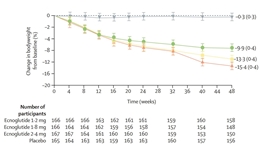 2024年1月3日,Sciwind在线公布Ecnoglutide治疗成人2型糖尿病的3期临床试验结果。Ecnoglutide皮下注射给药,连续治疗24周,Ecnoglutide的0.6 mg和1.2 mg剂量组糖化血红蛋白(HbA1c)分别降低1.96%和2.43%,显著高于安慰剂组0.87%。1.2 mg剂量组HbA1c≤6.5%达到76.1%,HbA1c<5.7%达到35.2%。在安全性方面,试验显示Ecnoglutide耐受性良好,最常见的不良事件为胃肠道反应(Sciwind, 2024)。